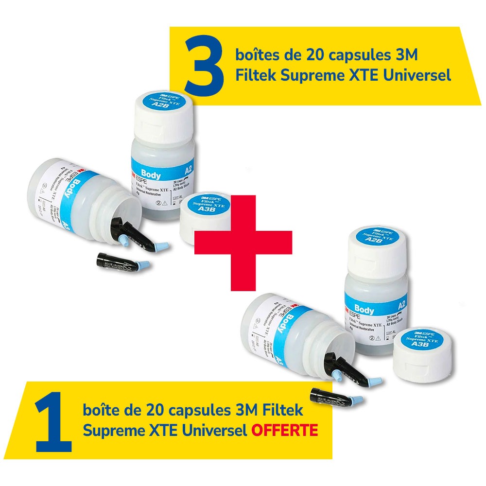 3 boîtes de 20 capsules 3M Filtek Supreme XTE Universel + 1 offerte