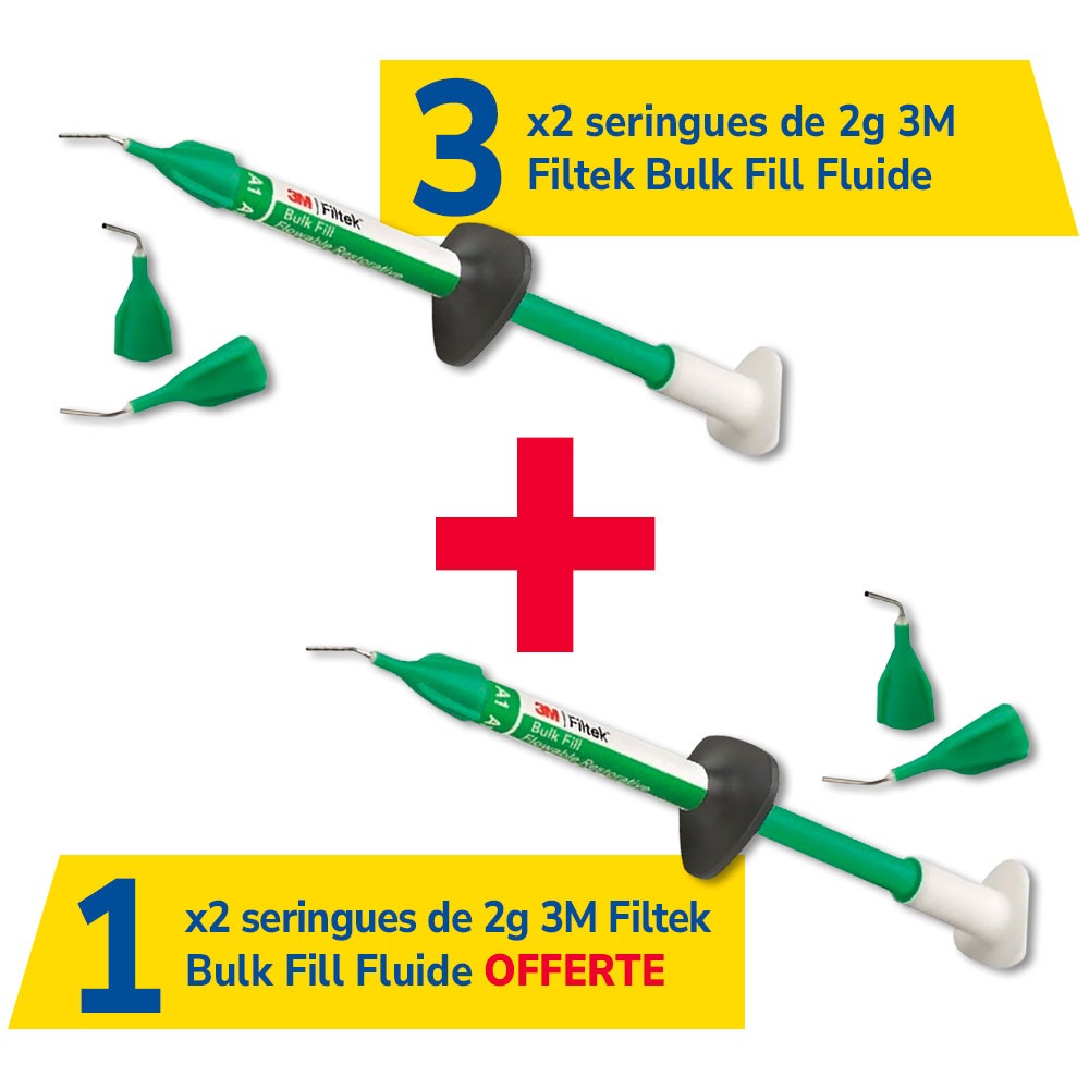 3x2 seringues de 2g 3M Filtek Bulk Fill Fluide + 1 offerte