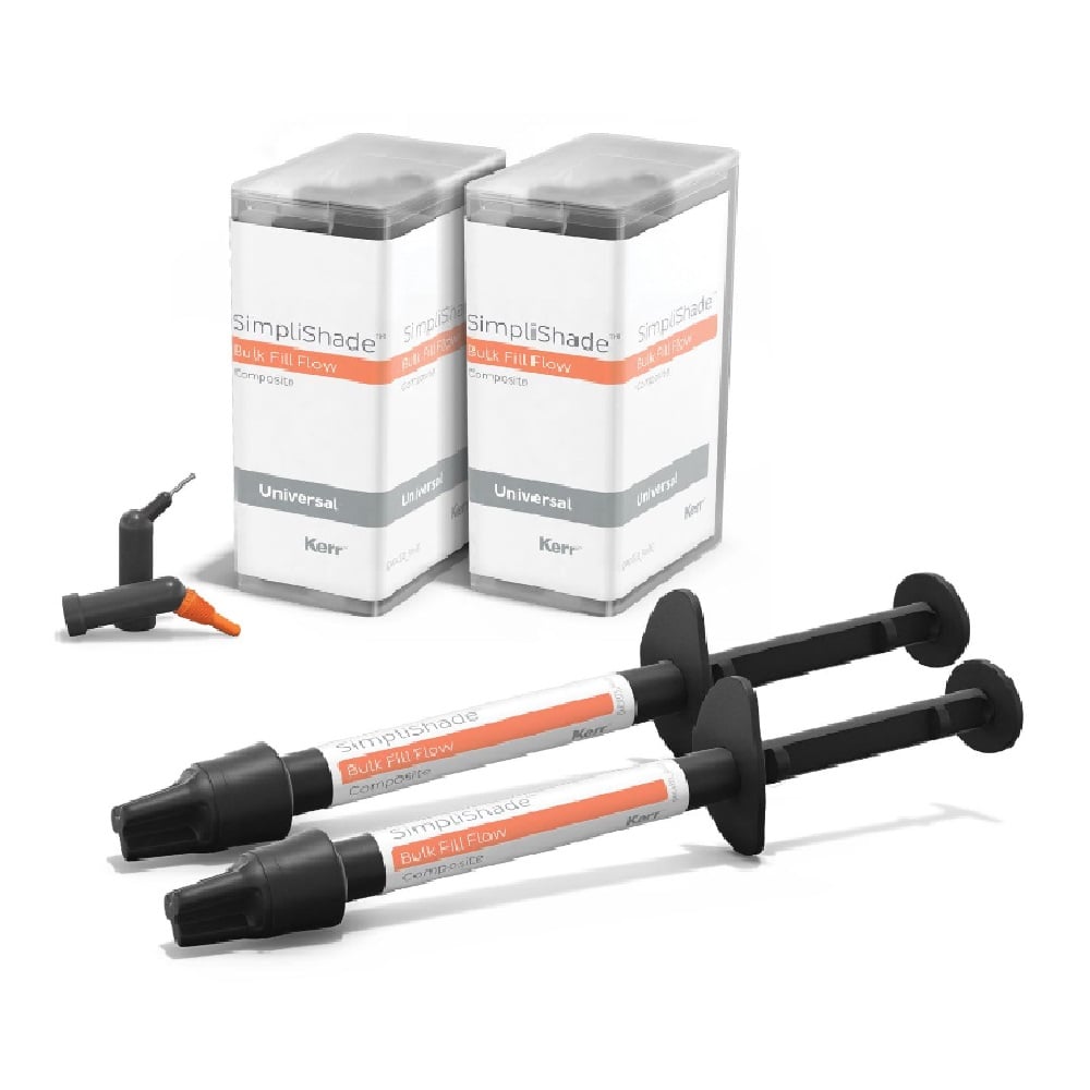 Le SimpliShade Bulk Fill Flow est préconisé comme fond de cavité pour les restaurations directes de classe I et II, le scellement de puits et de fissures, la restauration de petites cavités, les restaurations de classe III et V, ainsi que pour le blocage des contre-dépouilles et les réparations de restaurations provisoires en résine et en acrylique.