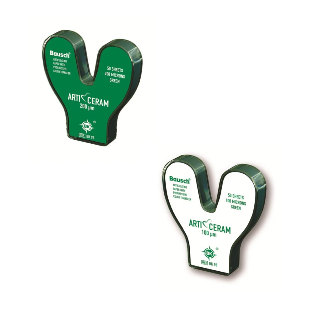 Arti-ceram est conçu pour marquer clairement les contacts occlusaux sur les surfaces brillantes des céramiques grâce à sa coloration verte progressive et à ses pigments spéciaux.