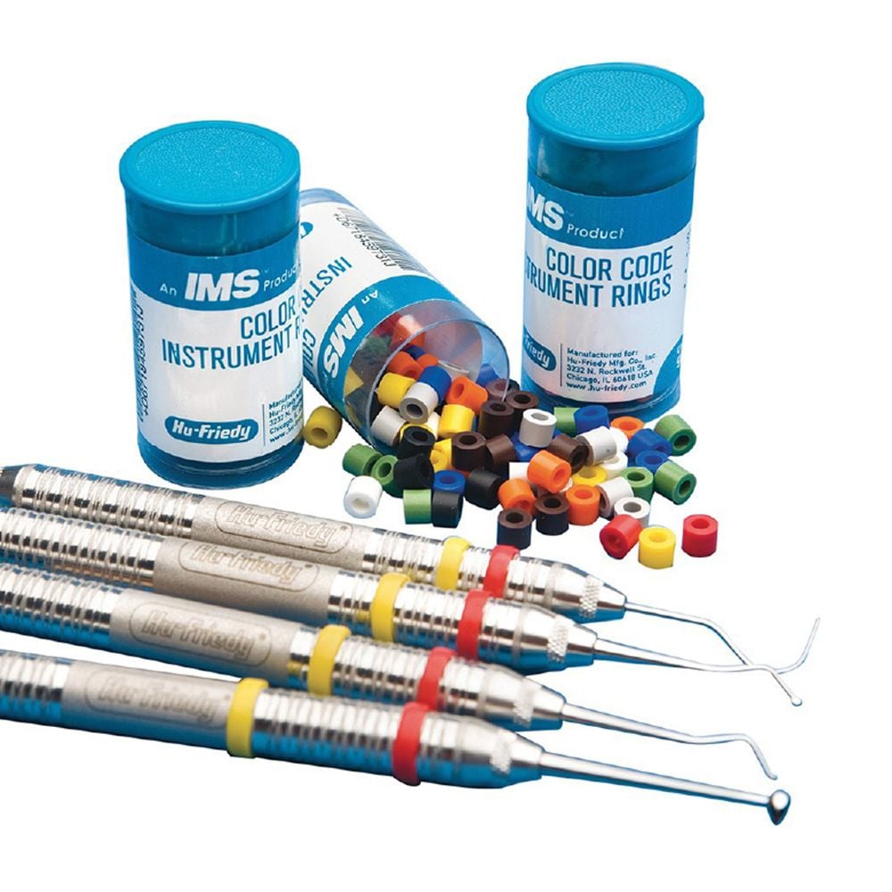 Bagues assorties silicone pour l'identification permanente des instruments selon l'acte et la place dans la séquence.
