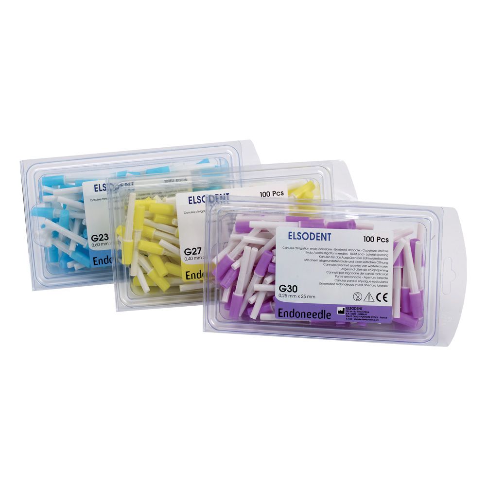 Avec leur embout à ouverture latérale, ces aiguilles d'irrigation identifiées par un code couleur bénéficient du savoir-faire d'Elsodent et sont idéales pour le nettoyage, la désinfection, l'irrigation en cas d'intervention endodotique.