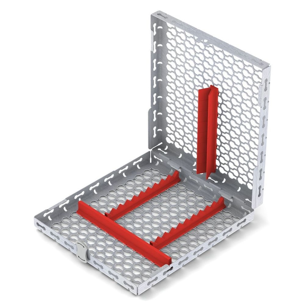 Avantages:Couvercle amovible Système de fermeture avec bouton papillon rotatif Porte-instruments en silicone