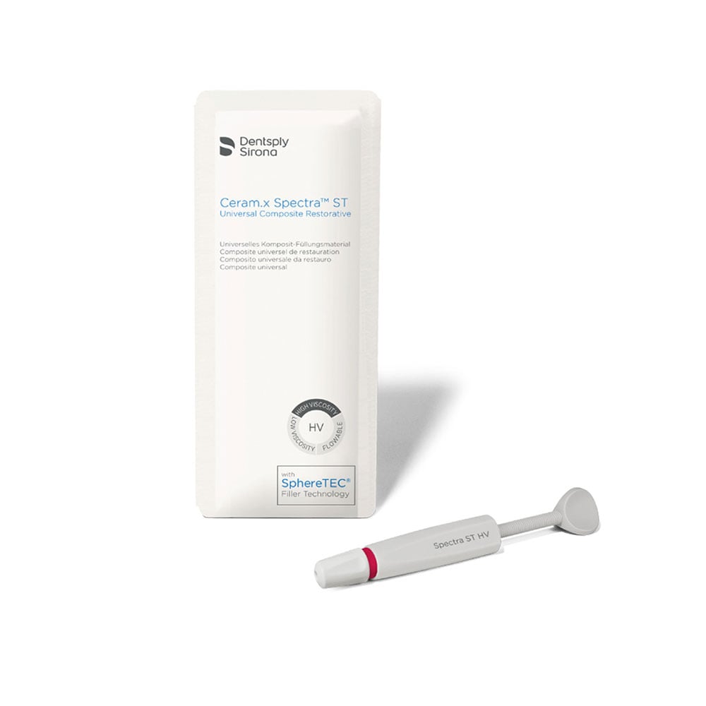 Produit de restauration composite universel Ceram.x Spectra ST. Le composite Ceram.x Universal est désormais le composite Ceram.x Spectra ST. La formule composite éprouvée de Dentsply Sirona, associée à la technologie SphereTEC, couvre désormais la gamme la « Spectra » (toutes les teintes et les préférences de manipulation), et vous permet de choisir ce qui compte le plus pour vous. Manipulation optimisée - non collante, facile à sculpter et résistante à l'affaissement. Désormais disponible en 2 options de manipulation : haute viscosité (HV) et NOUVELLE basse viscosité (LV). Teinte simplifiée - Couverture complète de la gamme de teintes VITA®1 avec seulement 5 teintes. Durabilité prouvée - Excellente résistance à l'usure et aux taches. Polissage brillant.