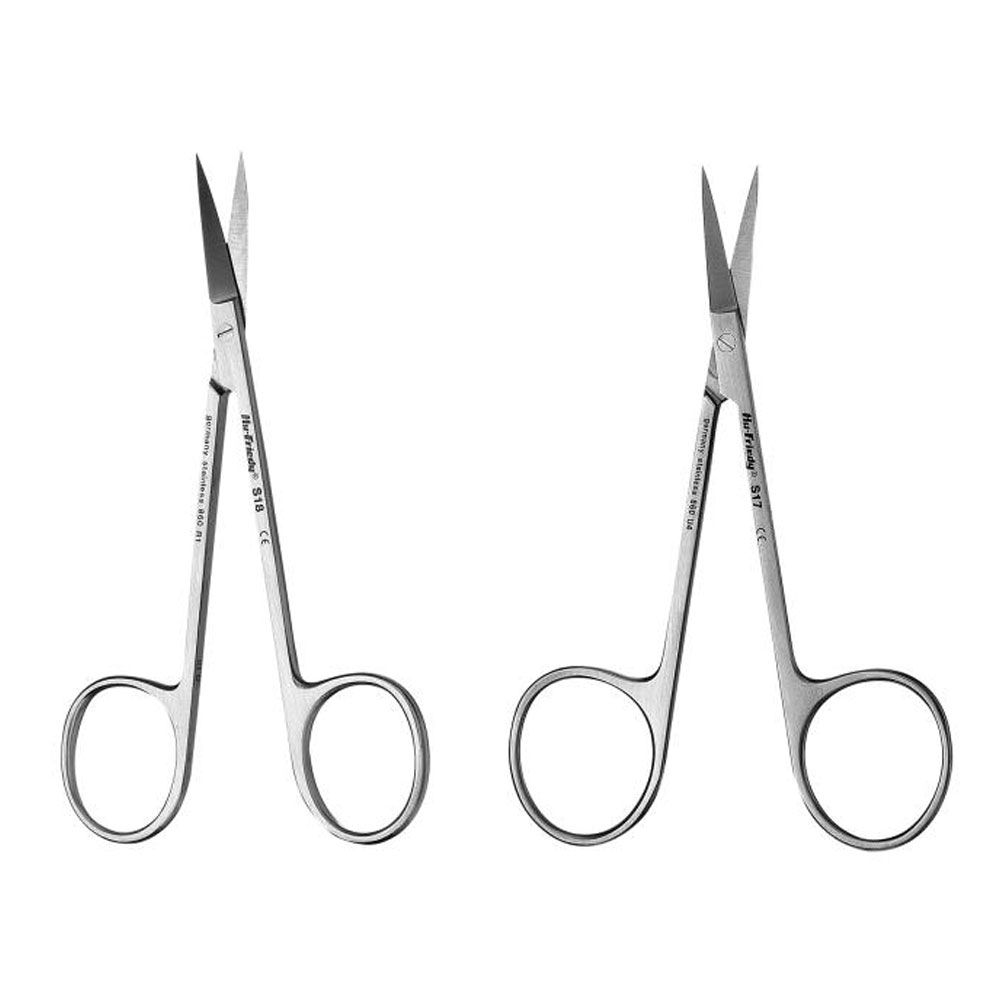 Une technique spéciale d'affûtage rend ces ciseaux en acier inoxydable plus sécants. Une rangée de dents évite les glissements quand on coupe ou désépaissit des lambeaux de tissus.