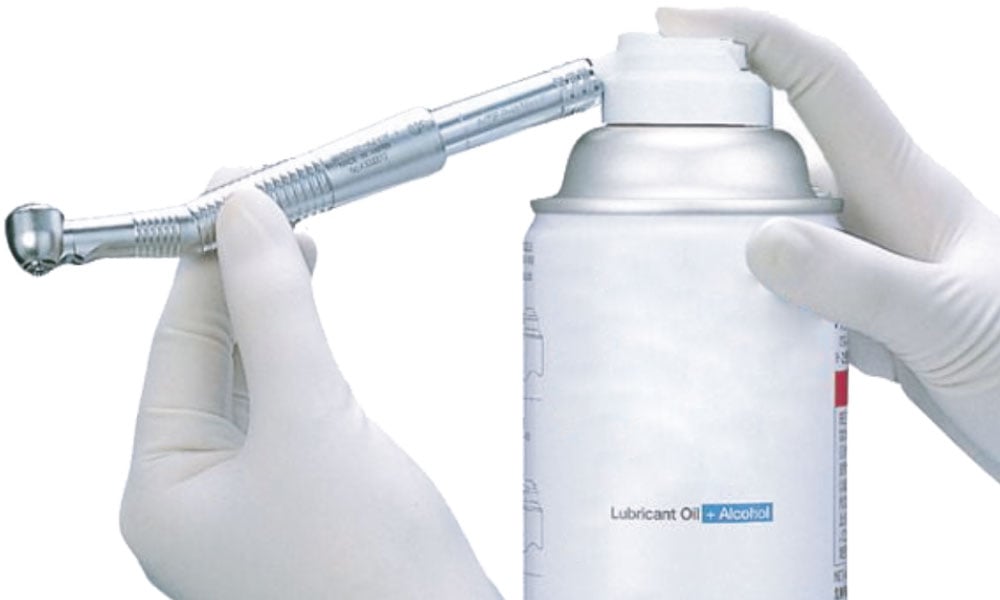 • A l’aide d’une bombe de lubrification et de l’embout adapté, vaporiser pendant 4-5 secondes par l'arrière de l'instrument.