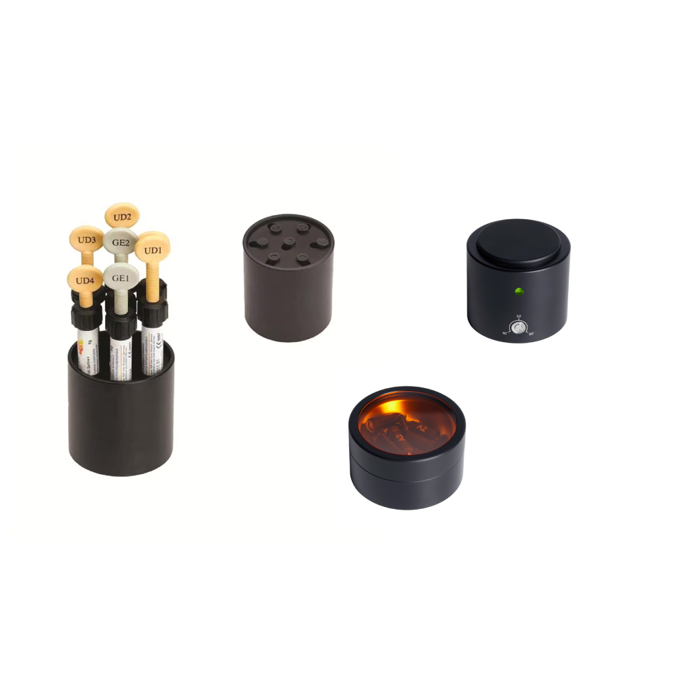 Système modulaire pour chauffer les composites et compules, facilitant leur manipulation. Il améliore la fluidité, réduit les bulles d’air et optimise l’application clinique.