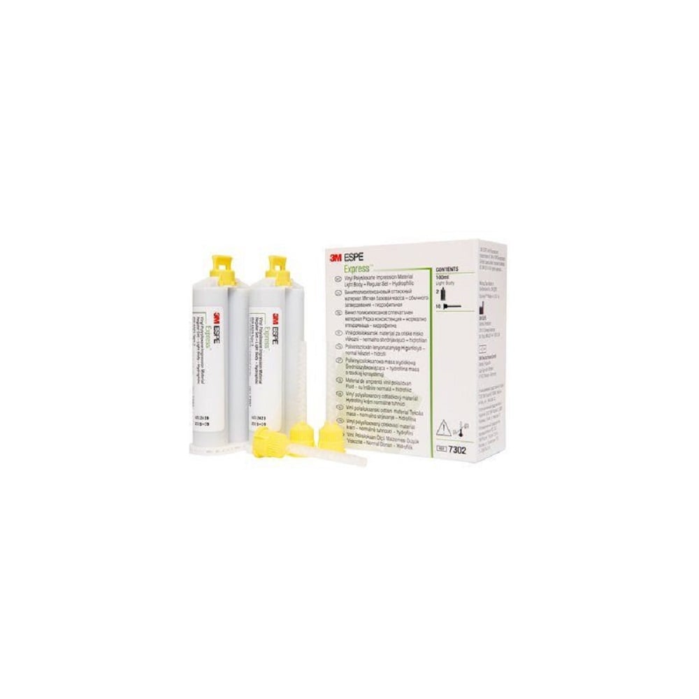• Boîte express Light : coffret de 4 x 50 ml + 20 embouts mélangeurs garant jaunes + 5 seringues intra-orales
