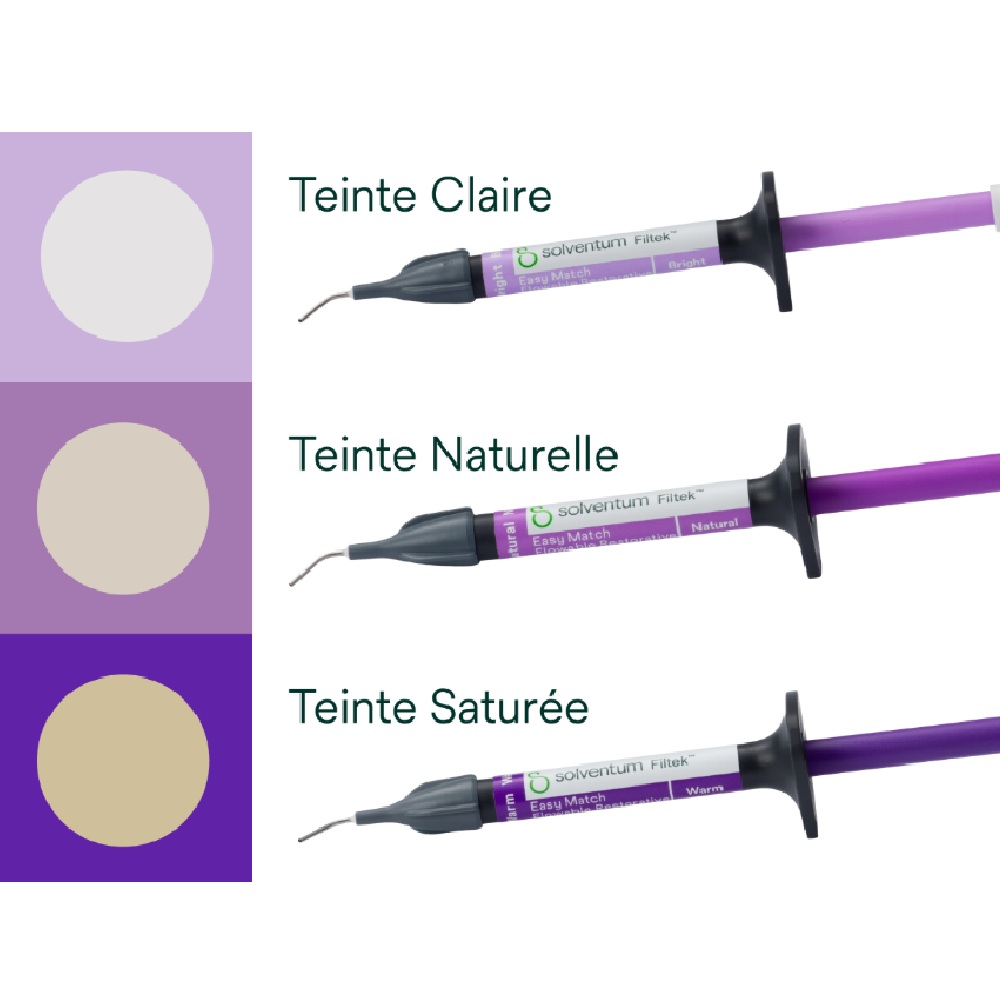 Filtek easy match flow est un matériau de restauration fluide photopolymérisable conçu pour simplifier les restaurations dentaires directes. Grâce à sa technologie avancée et à son choix de teintes intuitif, il offre une esthétique naturelle et une manipulation aisée pour de multiples applications cliniques.
