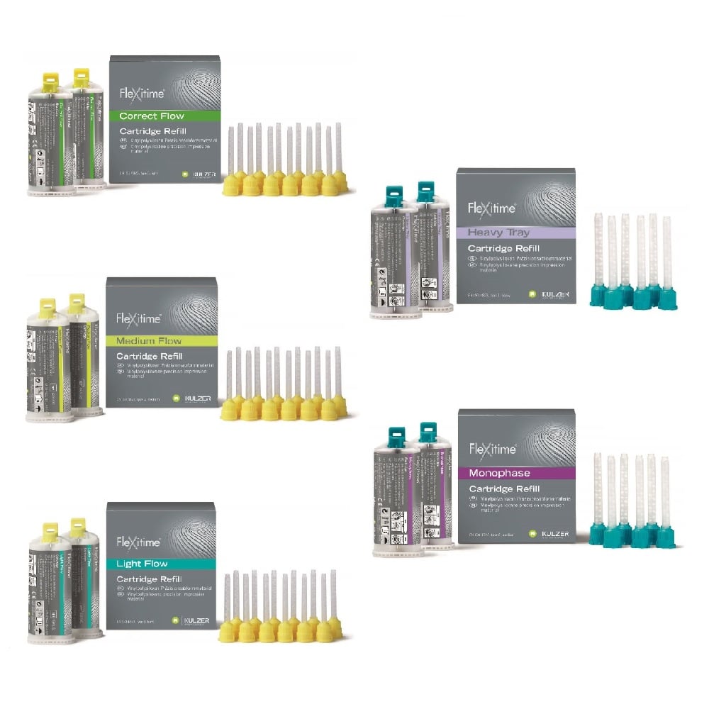 La gamme Flexitime propose des matériaux d’empreinte à base de polyvinylsiloxane, conçus pour répondre aux exigences élevées des professionnels dentaires. Grâce à leur hydrophilie supérieure et leur résistance à la traction, ces matériaux garantissent une reproduction fidèle des détails et une grande stabilité dimensionnelle. Dotés d’une cinétique de prise intelligente, ils s’adaptent aux différentes techniques d’empreinte, qu’il s’agisse de la technique du double mélange, des empreintes en deux temps ou des restaurations implantaires.