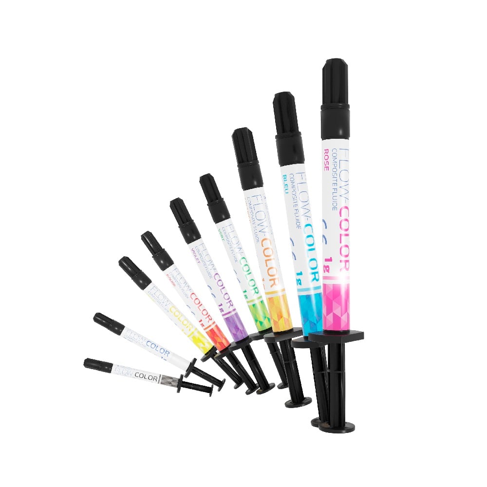 • Amélioration de l’esthétique de toute restauration dentaire : Flow-Color permet d'effectuer toute sorte de coloration ou imitation aidant à rétablir l’état naturel et l’esthétique des dents.