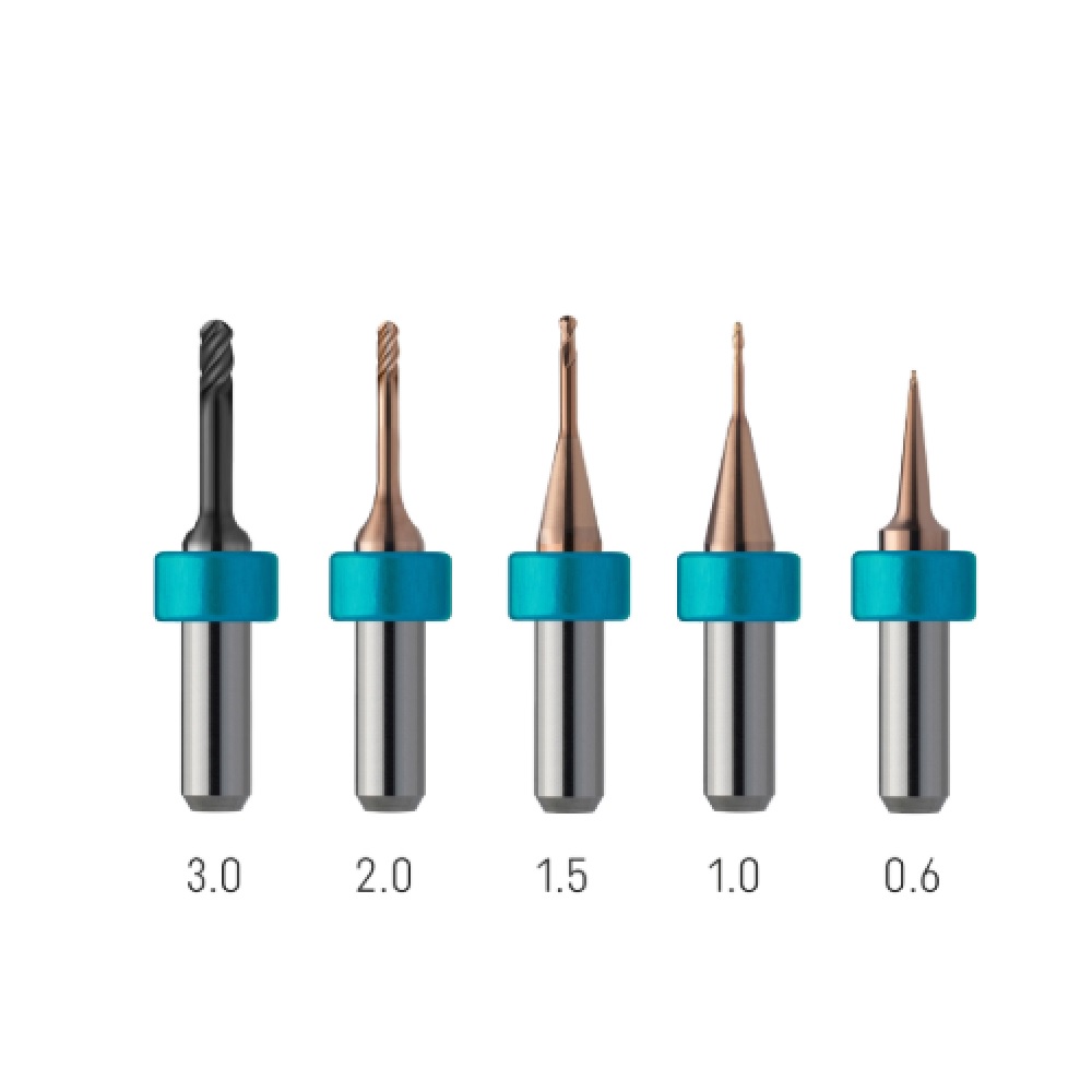 Fraises bleues d'usinage pour Titane, spécialement développées pour les usineuses Programill PM7 d'Ivoclar.