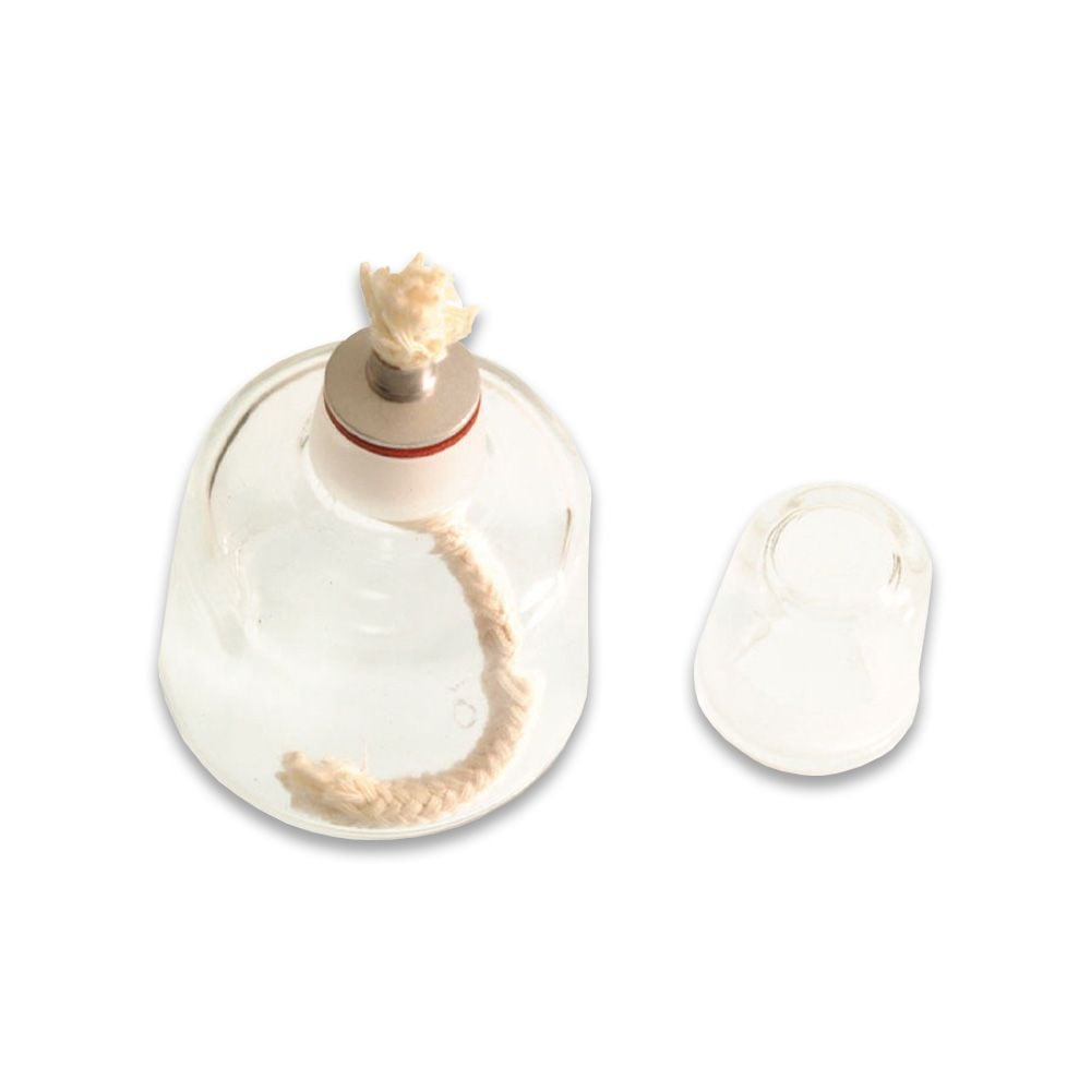 Lampes à alcool en verre cylindrique de diamètre : 65 mm.