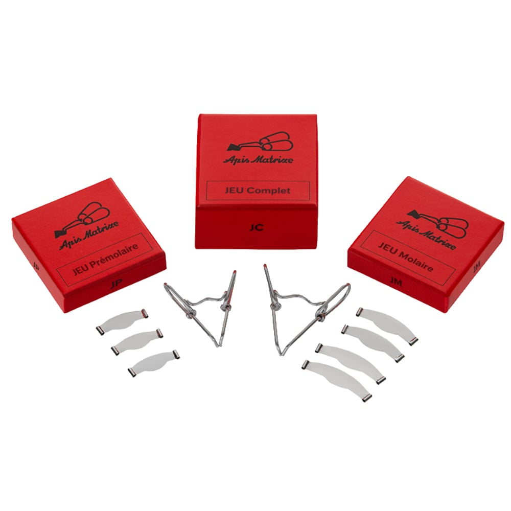 Matrices métalliques Apis permettant d'envelopper et de maintenir facilement les cavités mésiales ou distales à obturer.