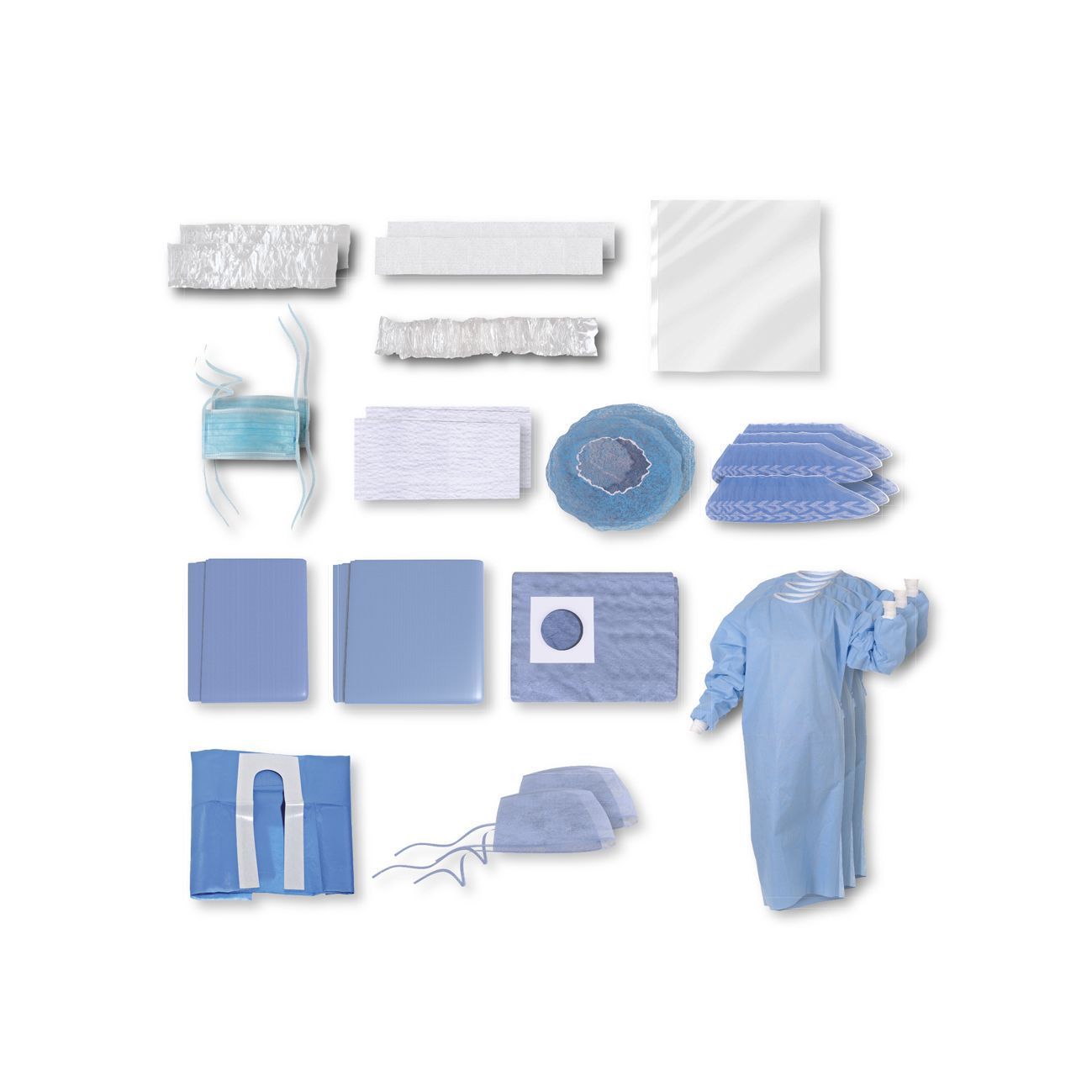 Kits de protection pour les actes de chirurgie au cabinet. Ils contiennent le nécessaire pour protéger le praticien, les assistant(e)s, le patient ainsi que l'environnement chirurgical.