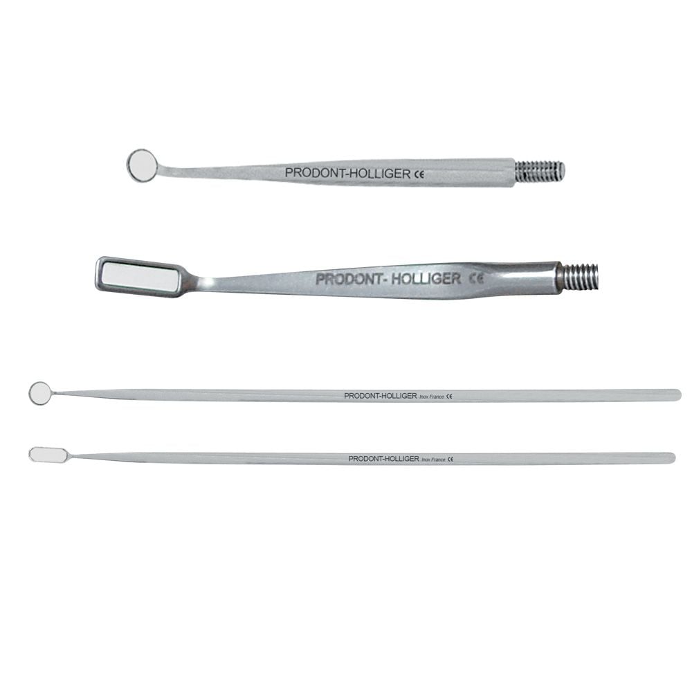 Miroirs rhodium fixés sur un support en acier inoxydable. Image d"une qualité parfaite.Ils sont utilisés en microchirurgie parodontale et endodontique avec des microscopes.