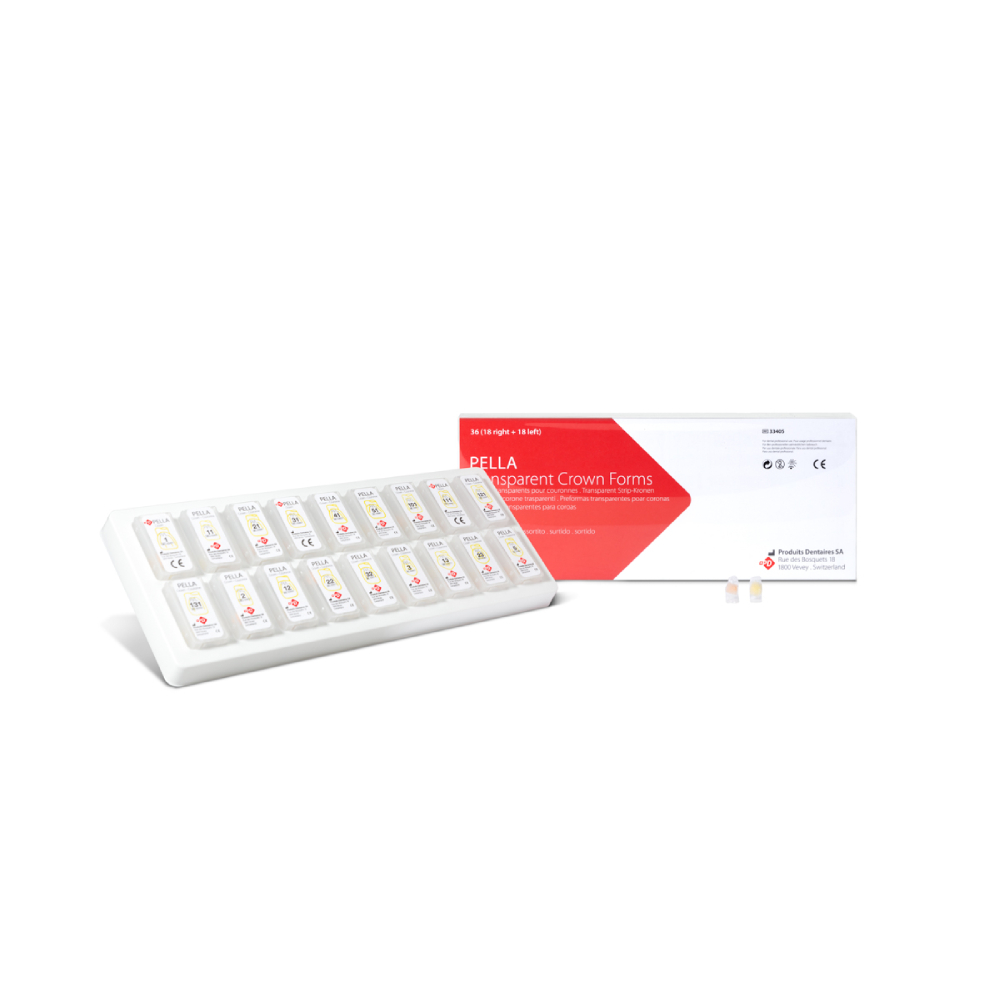Le coffret contient : 10 paires de centrales, 4 paires de latérales, 3 paires de canines, 1 paire de prémolaires. Codification couleur : L (gauche) = rose; R (droite) = jaune.