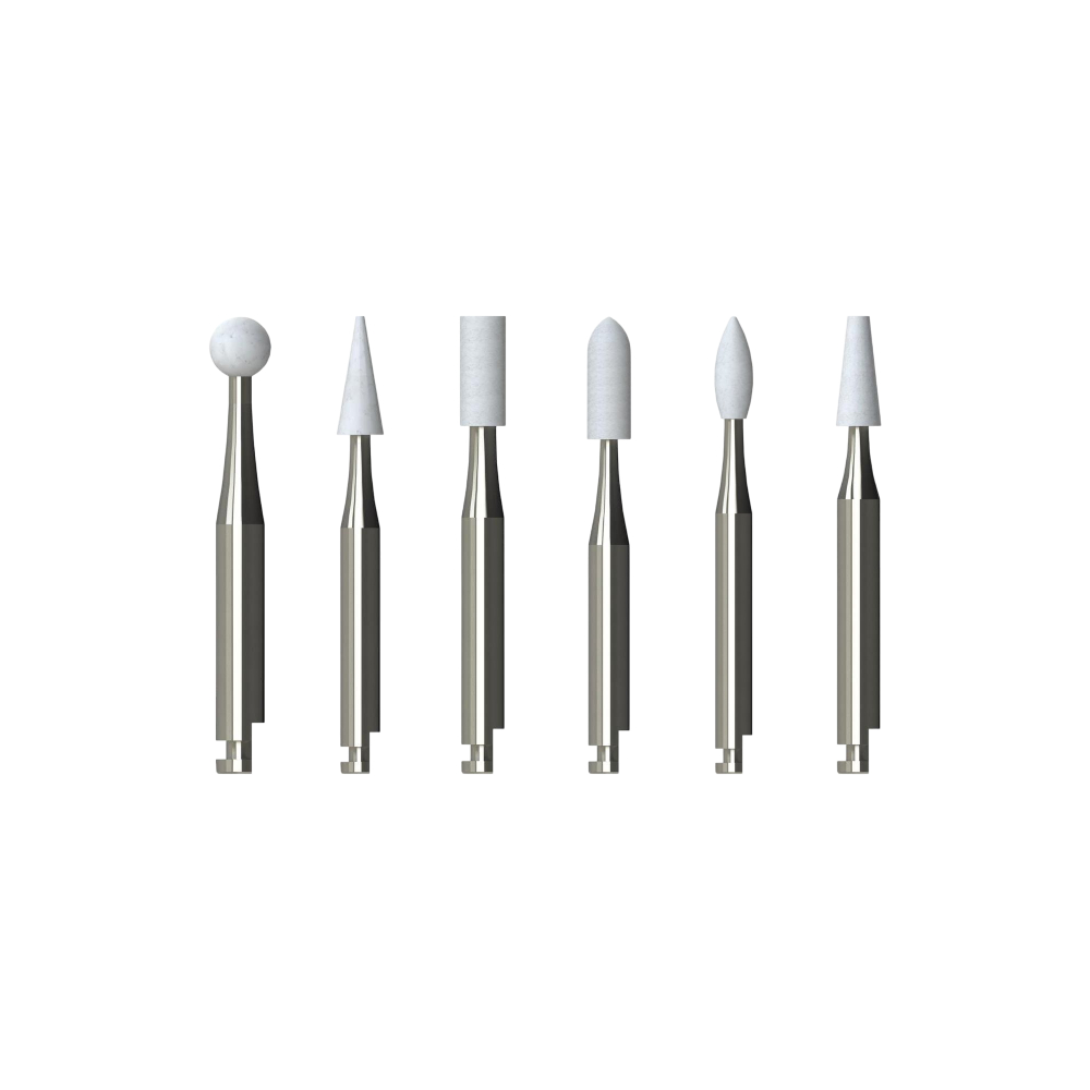 Abrasif en carbure de silicium, spécialement conçu pour la préparation et la finition des céramiques et des résines. Sa forme conique pointue permet un accès précis aux zones fines et un polissage contrôlé des surfaces restauratrices.