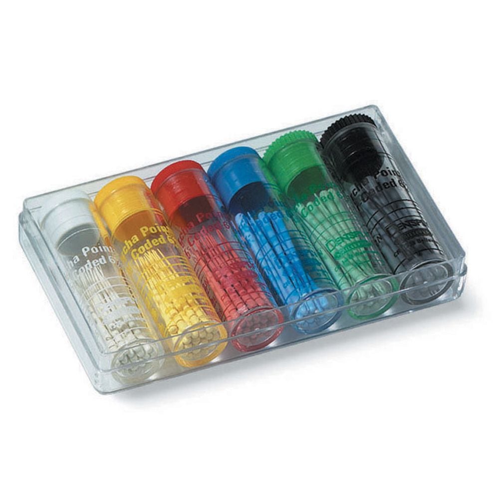Cones de Gutta 4% et 6%. Complément indispensable pour l'obturation canalaire des canaux préparés avec des systèmes rotatifs Nickel-Titane ou manuellement.