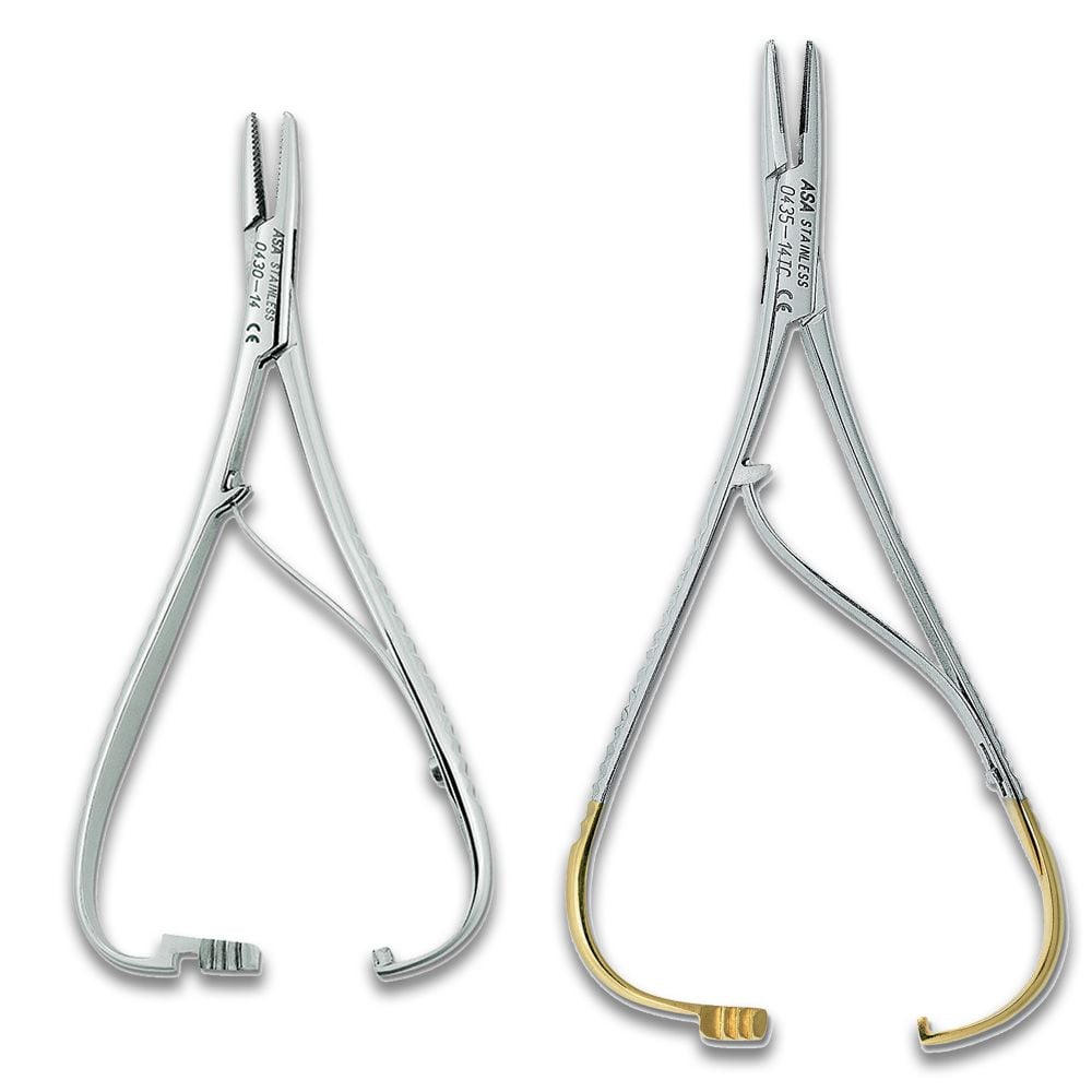 Pour tenir et accompagner l'aiguille pendant la suture. Produits en acier inox AISI 420.
