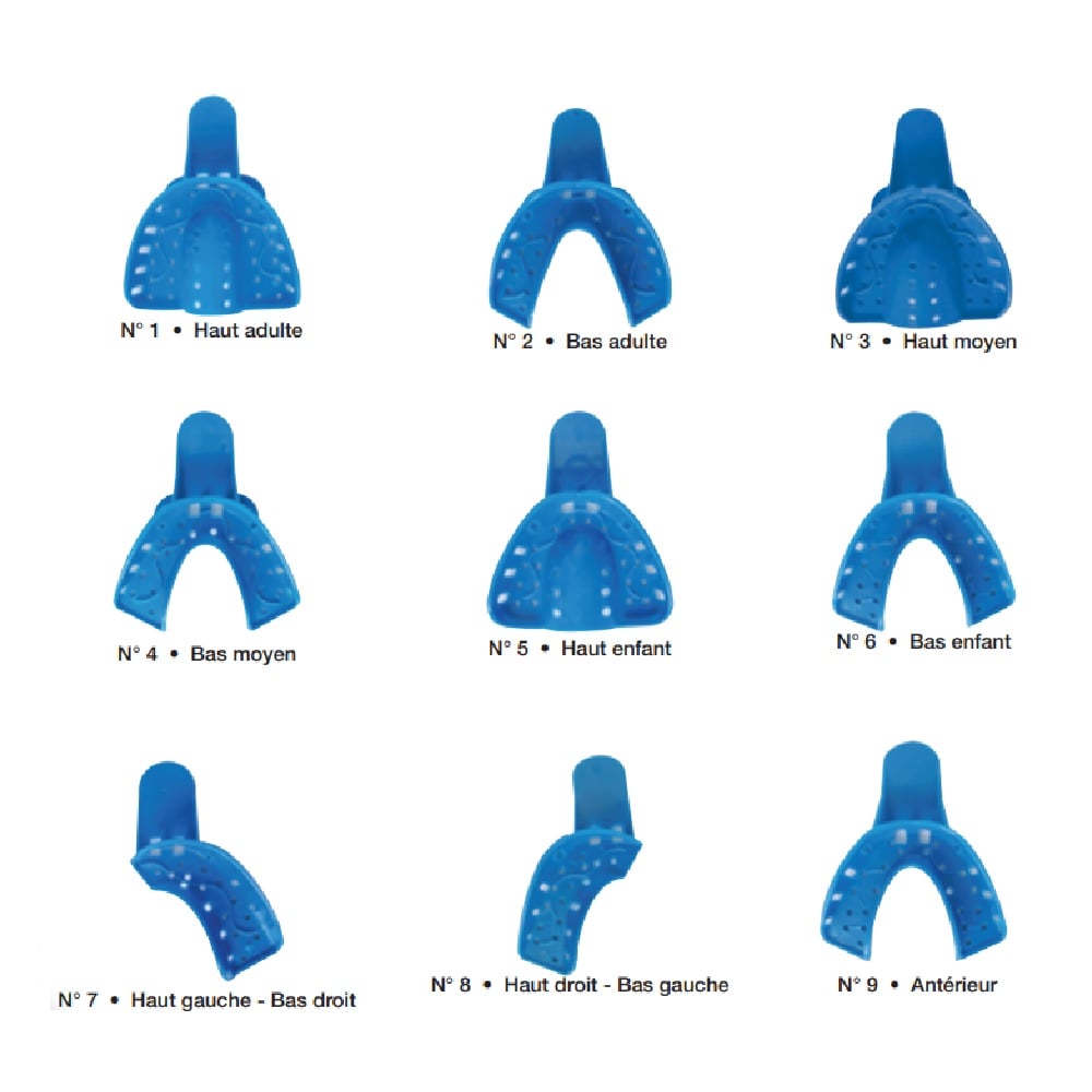 Porte-empreintes en plastique pour la prise d'empreintes en silicone ou en alginate.