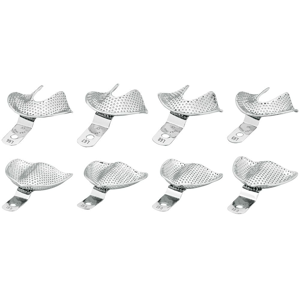 Porte-empreintes en inox pour édentés, pour prothèses totales. Stérilisables en autoclave jusqu'à 134 '°C.
