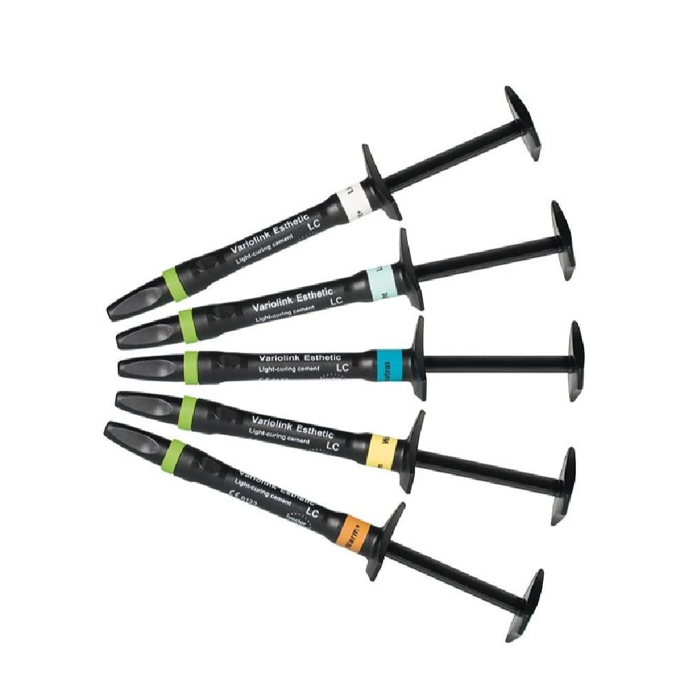 Variolink Esthetic est un composite de scellement adhésif, radio-opaque, photopolymérisable pour le scellement esthétique et permanent des restaurations en céramique et en résine composite (inlays, onlays et facettes avec une faible épaisseur de matériau < 2mm et une translucidité suffisante).