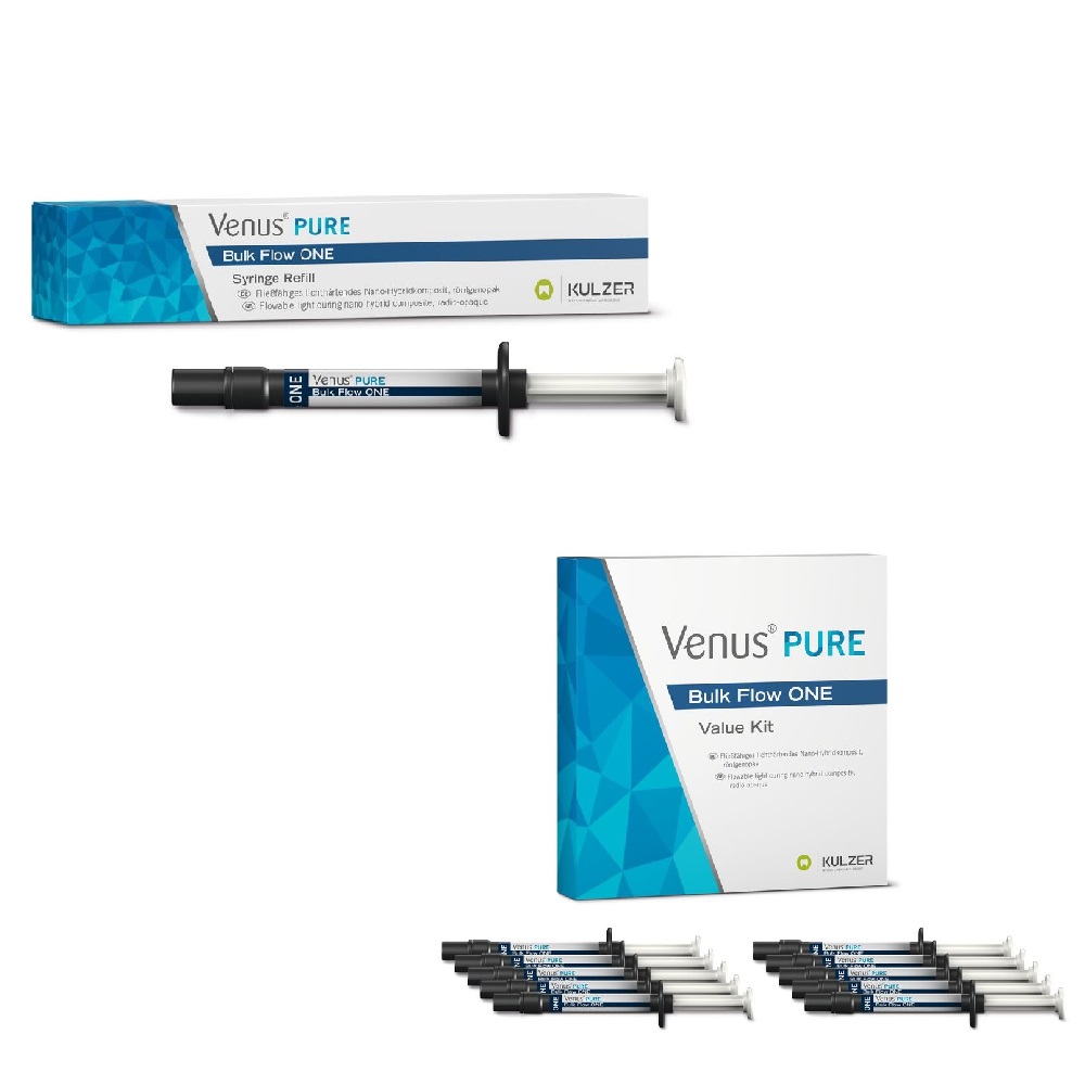 • Conditionnement de vente : Venus Bulk Flow ONE Seringues (1 x 2g + 5 embouts), Venus Bulk Flow ONE Value Kit Seringues (10 x 2g)